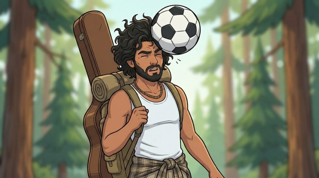 De repente, un grito infantil rompió la calma del bosque seguido por un silbido veloz en el aire. Antes de que pudiera girar la cabeza, un balón de cuero impactó de lleno en su sien, apagando las luces de su mundo y enviándolo directamente al suelo alfombrado de hojas secas.