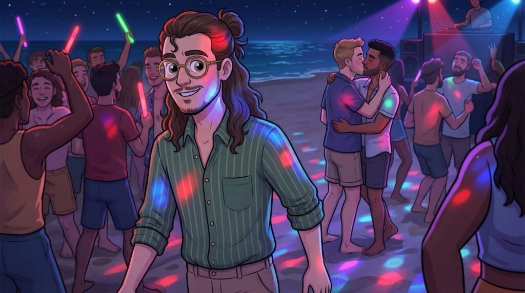 Juan caminaba con la mirada fija, escaneando cada rostro con una desesperación que le hacía ignorar el cansancio de sus piernas. Veía a parejas de hombres tomados de la mano, a chicas besándose con libertad y a personas que expresaban su identidad sin un ápice de miedo, algo impensable en las calles de su pueblo.