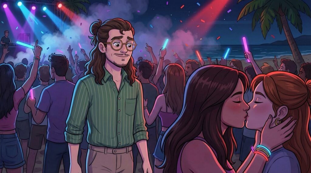 El asombro se mezclaba con la nostalgia; cada risa que escuchaba le recordaba a la de Alexander, y cada flash de cámara que veía a lo lejos le hacía correr con la esperanza de encontrar al dueño de sus suspiros. La fiesta era un caos hermoso, un refugio de colores donde Juan, por primera vez, no sentía que sus anteojos fueran un escudo contra el juicio ajeno.