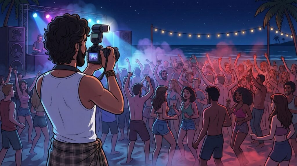 De repente, a lo lejos, cerca de un escenario improvisado sobre la arena, vio un brillo familiar: la lente de una cámara capturando el movimiento de la gente. El corazón de Juan dio un vuelco violento cuando reconoció la postura atlética y los rizos oscuros que tanto había extrañado en sus noches de soledad.