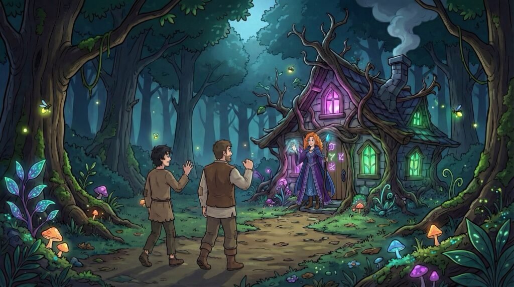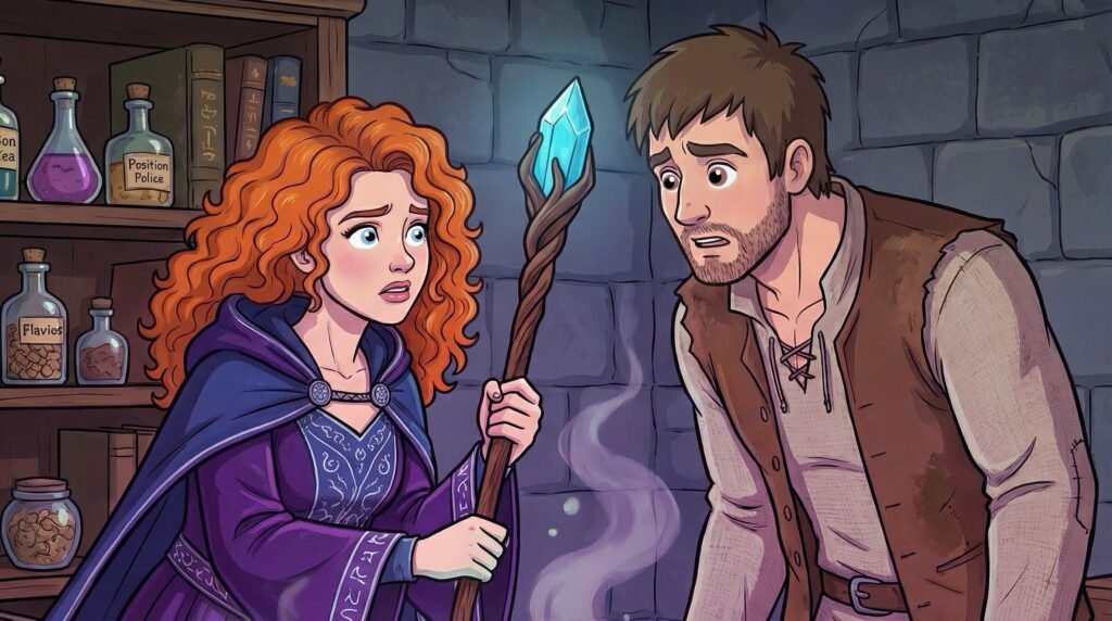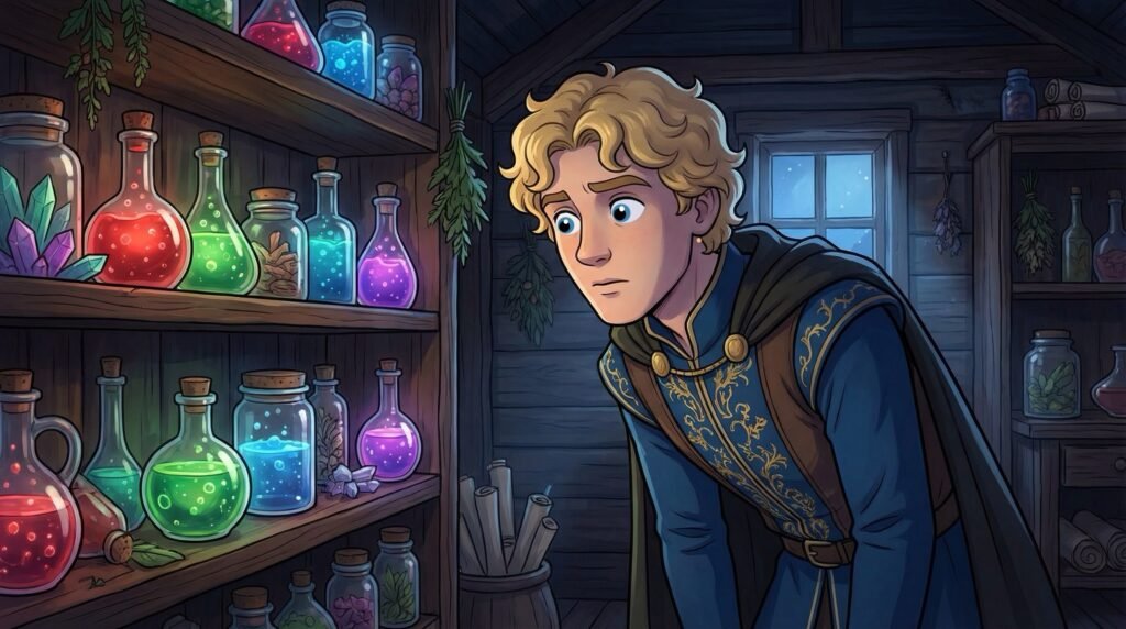 Matilde accedió de inmediato a ayudarlos, movida por la lealtad hacia Diego y la curiosidad por el joven noble que parecía tan fuera de lugar en su cabaña de madera. Comenzó a preparar la pócima en un caldero de bronce, lanzando puñados de polvos brillantes y raíces secas mientras el fuego crepitaba con colores inusuales. Mientras mezclaba los ingredientes, hablaba entre susurros con Diego en un rincón de la habitación, preguntándole por la salud de su hija y lamentándose por no haber podido encontrar ella misma una cura para la extraña enfermedad.
