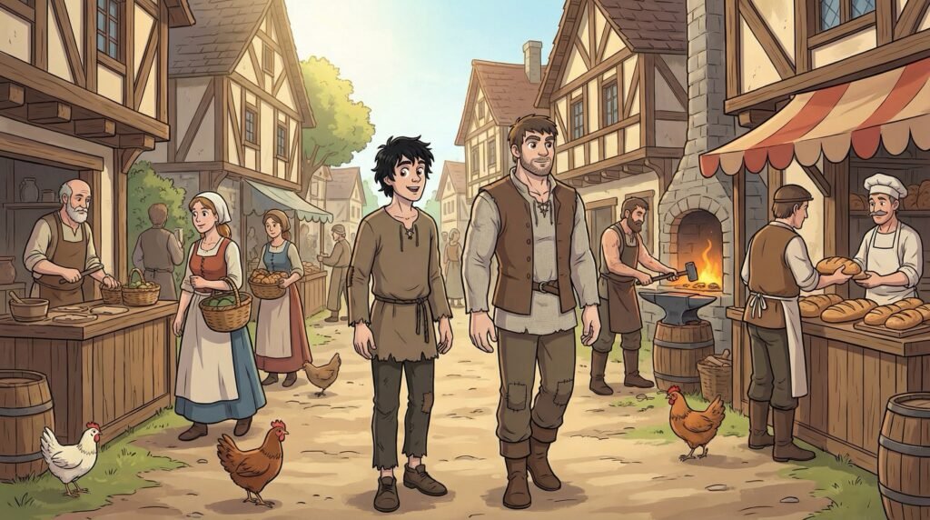 Agustín y Diego recorrieron las calles del pueblo una vez más, pero esta vez lo hacían a plena luz del día, mezclándose con la gente que comenzaba su jornada laboral. El príncipe miraba con fascinación y curiosidad las vidas de los aldeanos, observando cómo los panaderos sacaban el pan caliente y cómo los herreros golpeaban el metal. Nunca había estado tan cerca de la plebe en su estado natural, sin desfiles ni alfombras rojas de por medio; todo le resultaba nuevo, vibrante y fascinante, como si estuviera viendo el mundo en colores por primera vez.