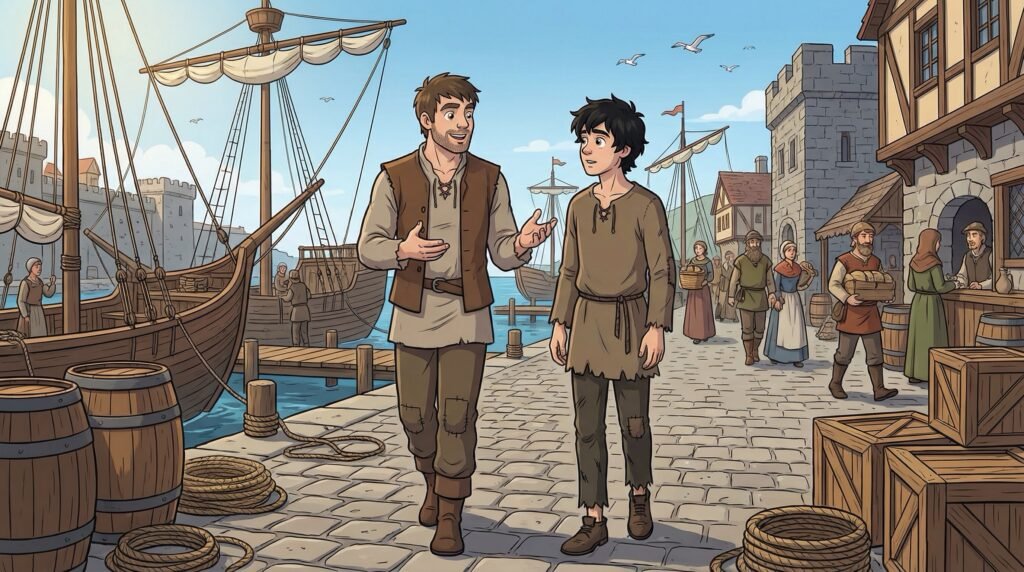 Mientras se dirigían al puerto, Agustín se sentía maravillosamente libre bajo su nueva identidad, disfrutando del anonimato que la poción de Matilde le proporcionaba. Diego lo guiaba con destreza por los barrios más concurridos, manteniendo siempre una distancia prudencial para evitar que cualquier transeúnte chocara accidentalmente con el príncipe y rompiera el hechizo. El olor a salitre y a brea comenzó a inundar el aire, indicando que el muelle estaba cerca y con él, la siguiente etapa de su peligrosa travesía hacia lo desconocido.