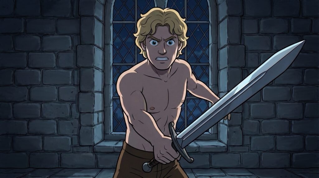 —¡Por favor, no grite! ¡No vengo a hacerle daño! —suplicó Diego en un susurro cargado de angustia, pegando su rostro al del príncipe para que este pudiera ver la sinceridad en sus ojos. Agustín, sin embargo, no estaba dispuesto a confiar en un intruso nocturno. En medio del forcejeo, el príncipe logró extender su brazo libre hacia la mesa de noche, donde su espada descansaba siempre al alcance de su mano. Con una agilidad propia de su entrenamiento, desenvainó el acero y apartó a Diego con un empujón violento.