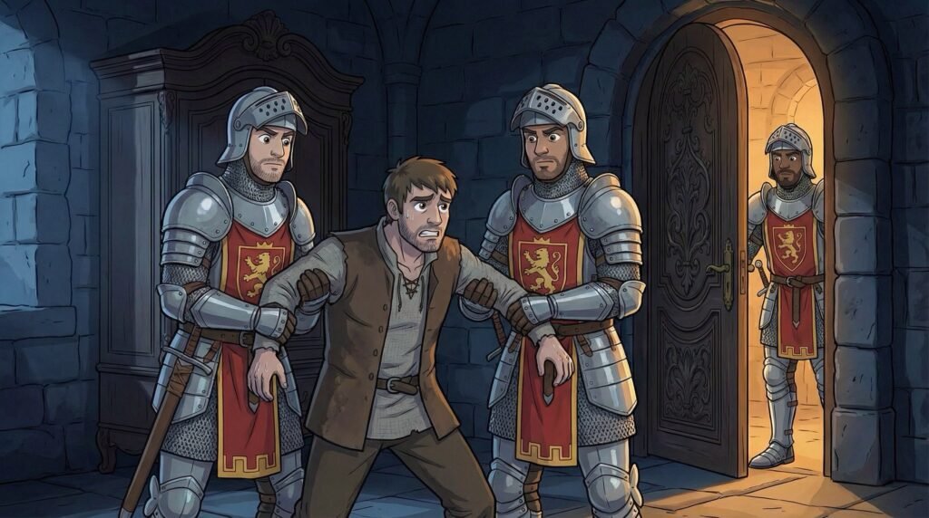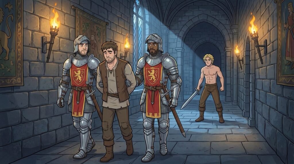Los guardias no hicieron preguntas; al ver al príncipe amenazando a un hombre de aspecto andrajoso, se lanzaron sobre Diego con una violencia implacable. Lo arrojaron al suelo y lo inmovilizaron, presionando su rostro contra la alfombra mientras Agustín bajaba lentamente la espada, observando la escena con una expresión indescifrable. Diego intentó gritar una vez más sobre su hija, pero un golpe seco lo dejó sin aliento mientras los soldados lo ponían en pie para llevárselo detenido.