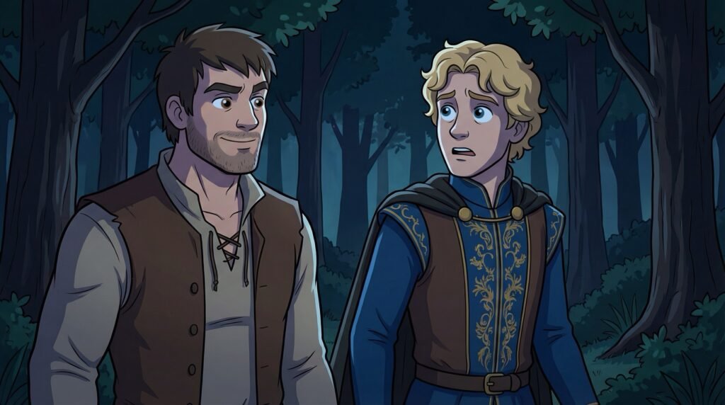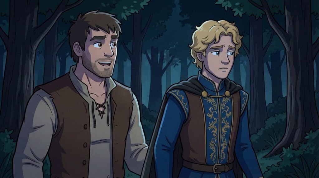 Diego y Agustín se adentraron en un bosque espeso que rodeaba la ciudad, un lugar donde los árboles eran tan altos que ocultaban la luz de la luna. Agustín, sintiéndose cada vez más lejos de la seguridad de su hogar, preguntó en voz baja a dónde iban exactamente, pues el camino parecía volverse más salvaje a cada paso. Diego respondió con calma que tenían que hacer algo para ocultar su apariencia, ya que si salía al mundo con sus ropas finas y sus rasgos nobles, cualquier viajero o soldado reconocería al príncipe en cuestión de minutos.