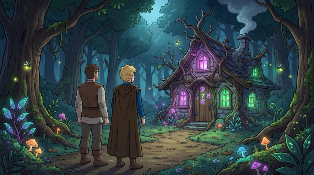 Finalmente llegaron a las afueras de una cabaña pequeña y rústica situada en medio de un claro del bosque, un lugar que parecía existir fuera del tiempo y del espacio ordinario. En la zona se respiraba una aura mágica, un cosquilleo en el aire que hacía que el cabello de Agustín se erizara y que los pájaros nocturnos guardaran silencio. La cabaña estaba rodeada de hierbas aromáticas y flores que brillaban con una luz tenue y azulada, indicando que quien vivía allí no era una persona ordinaria, sino alguien vinculado a las fuerzas de la naturaleza.